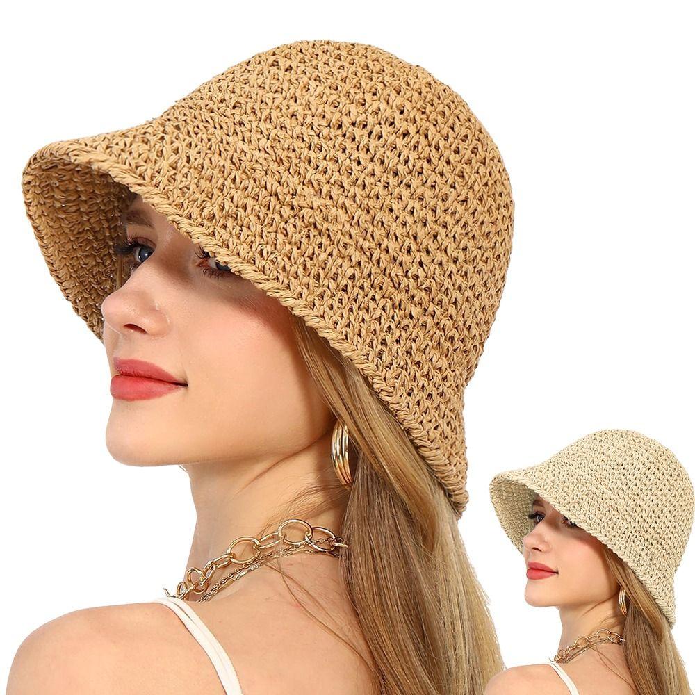 Fashion UV Protection Straw Bucket Hat Foldable Hand Weaving Outdoor Sunshade Cap Breathable Fisherman Hat for Women Beach