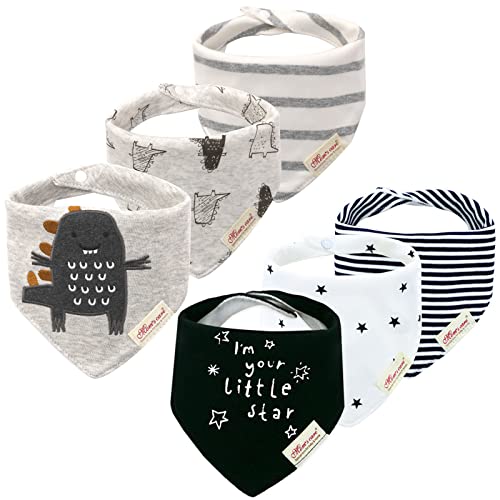 6 Pack Baby Bandana Bibs Drool Bibs, Adjustable Cotton Bandana Drool Bibs Super Absorbent for Newborn Infant 0-36 Months, Multi-Color