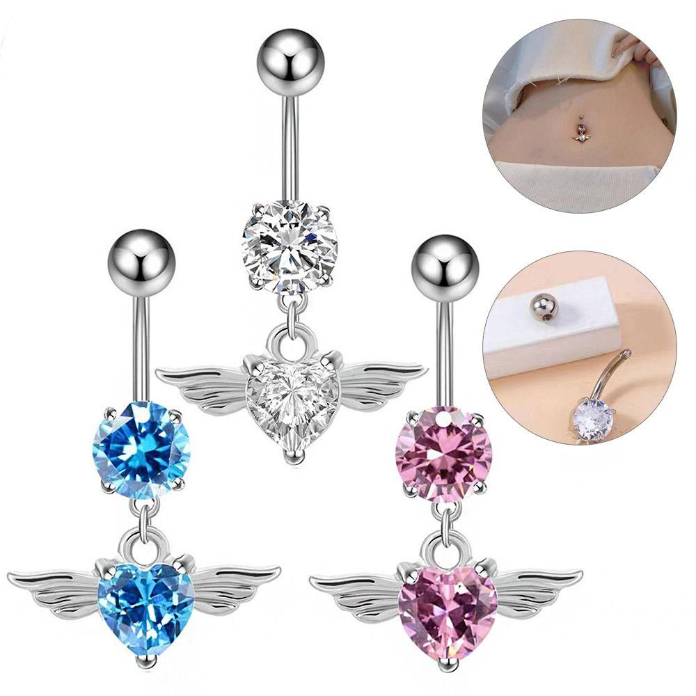Stainless Steel Angel Belly Button Ring Rhinestone Body Piercing Jewelry Zircon Navel Ring Women