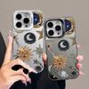 Line Star Moon Pattern Cool Mirror Face Phone Case For iPhone 16 15 14 13 12 11 Pro Max XS Max XR 7 8 Plus Shockproof Back Cover