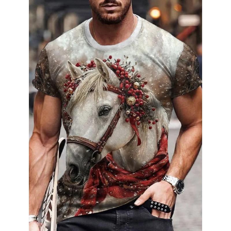 3D Printed Horse Pattern Summer Fashion Men's T-shirt Breathable Casual
