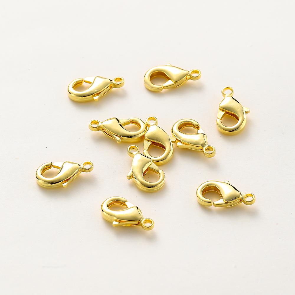 10pcs/bag 14K 18K Gold Plated 10mm 12mm 15mm Lobster Clasps Necklace Bracelet Connector Clips For DIY Jewelry Making Accessories