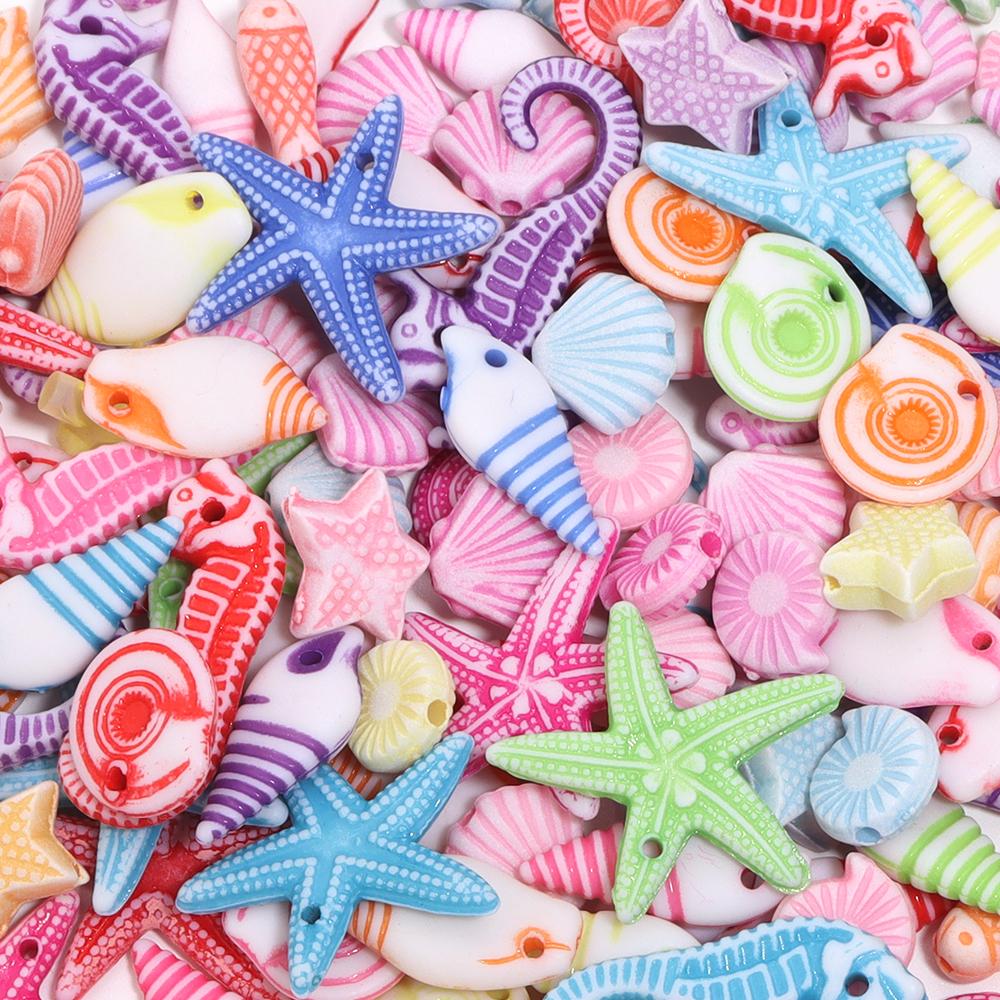 100 pièces Mix Perles Acryliques Animaux Marins Charms Coquillage Étoile de Mer Perles Espacement Libres Pour Fabrication de Bijoux Accessoires DIY