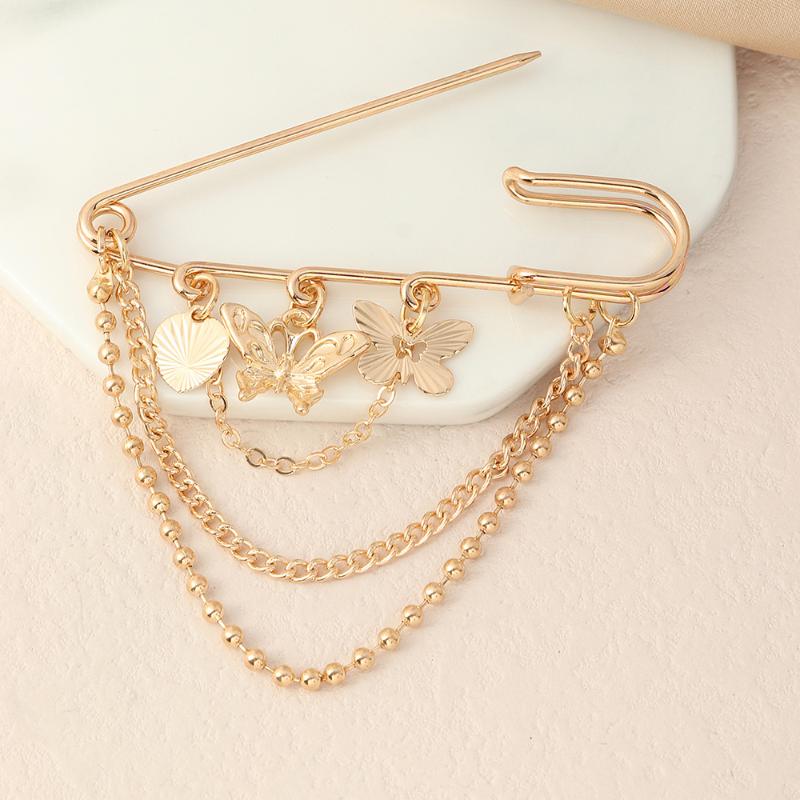 Vintage Personalized Butterfly Pentagram Tassel Pendant Brooches Pin For Women Coat Jewelry Accessries Gift