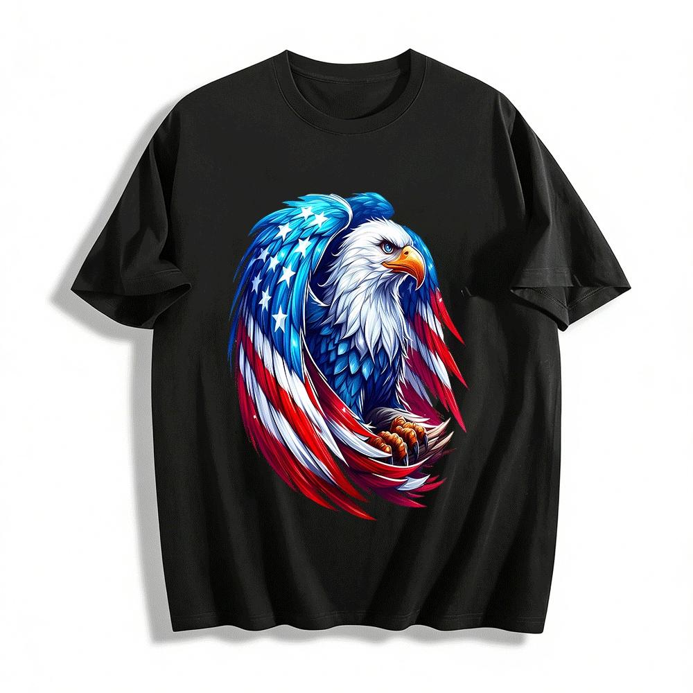 American Flag Bald Eagle Print Casual T-Shirt Pure cotton T-shirt