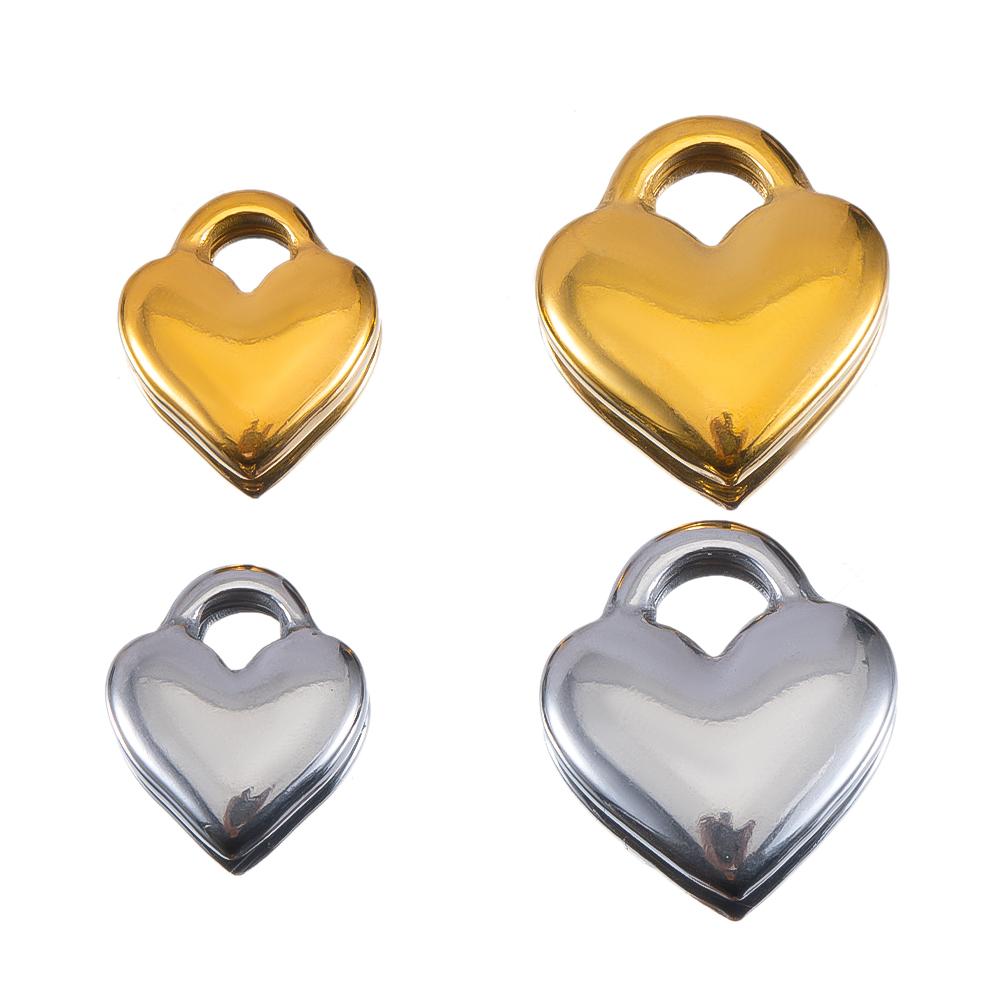 5pcs Glossy Heart Lock Charm Stainless Steel Gold Color Love Couple Pendant Earring Necklace Choker DIY Jewelry Making Wholesale