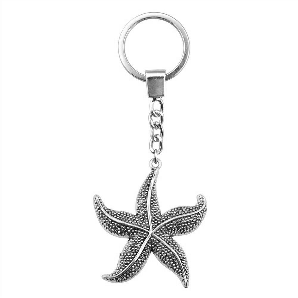 Marine Life Turtle Ocean Creature Pendant Antique Bronze Metal Keychain with 30mm Ring for Men Fashion Gift