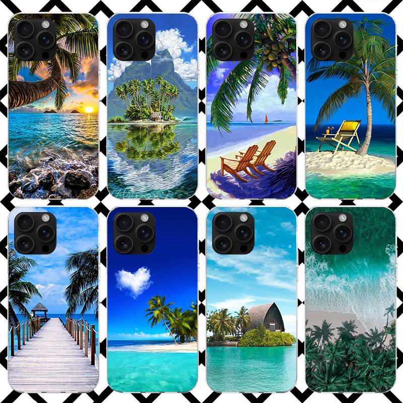Summer Beach Sunset Sea Palm Tree Phone Case for iPhone 17 Air 16 16E 15 14 Plus 13 Mini 12 11 Pro Max 7 8 + SE 2020 Soft Cover