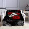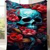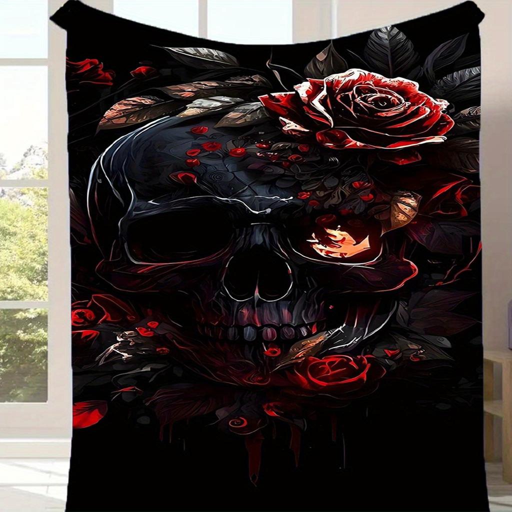 1pc Rose And Skull Print Blanket, Flannel Blanket, Soft Warm Throw Blanket Nap Blanket For Couch Sofa Office Bed Camping Travel