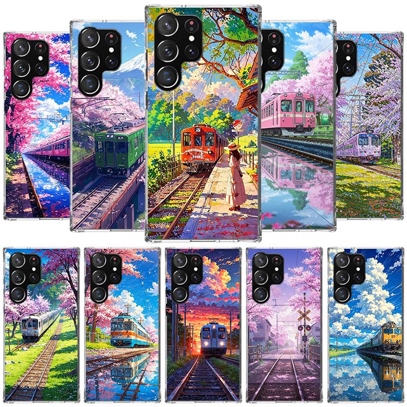 Retro Japanese Sakura Train Phone Case For Samsung Galaxy S26 S25 Edge S24 Ultra S23 S22 Plus S21 S20 FE Soft Fundas Shell Galax