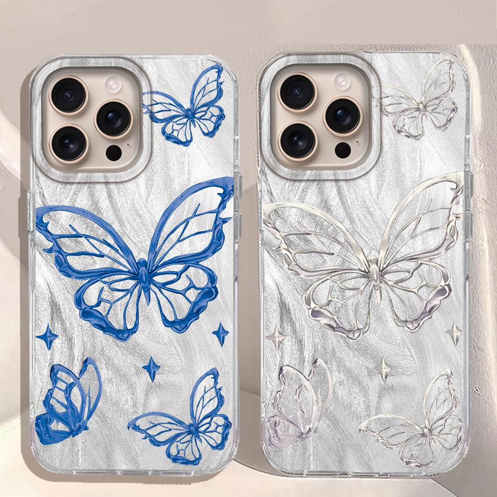 Laser Silver Butterfly Feather Texture Women Phone Case for iphone 16 15 14 7 8 Plus 13 11 12 Pro Max X XS XR SE 2022 16e Cover