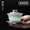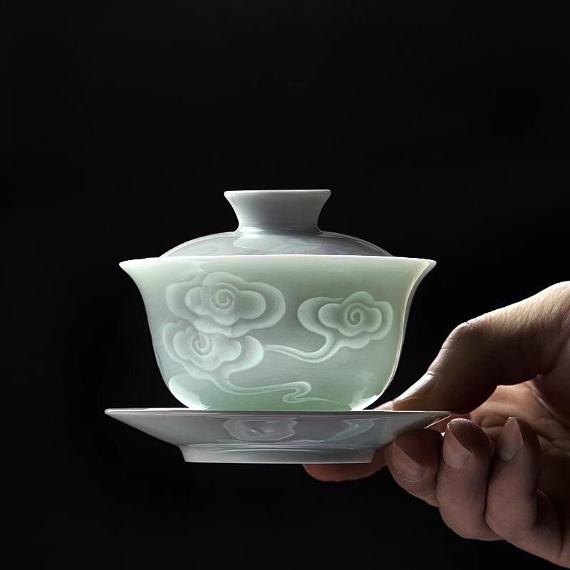 180ML celadon cover bowl, Chinese style pure hand-carved Kung Fu tea set, tea bowl, hand-held tea bowl