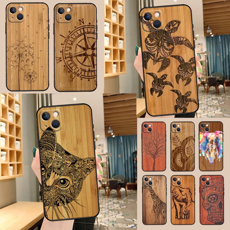 Natural Bamboo Wood Animal Print Case For Samsung Galaxy A55 A52 A32 A12 A33 A06 A16 A26 A36 A56 A15 A53 A13 A34 A54 A14 A17