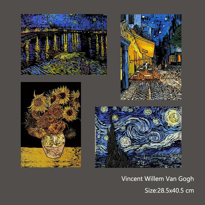 4 Pcs/Set 40.5X28.5 Cm Diy Scratch Painting Vincent Van Gogh Sunflowers The Starry Night Artwork Scratch Painting Drawing Toys