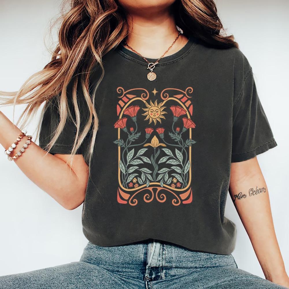 T-shirt Fleurs Sauvages Bohème T-shirt Fleurs Bohèmes Femme Manches Courtes T-shirts Vintage Casual Hauts Floraux Nature T-shirt Vêtements Femme