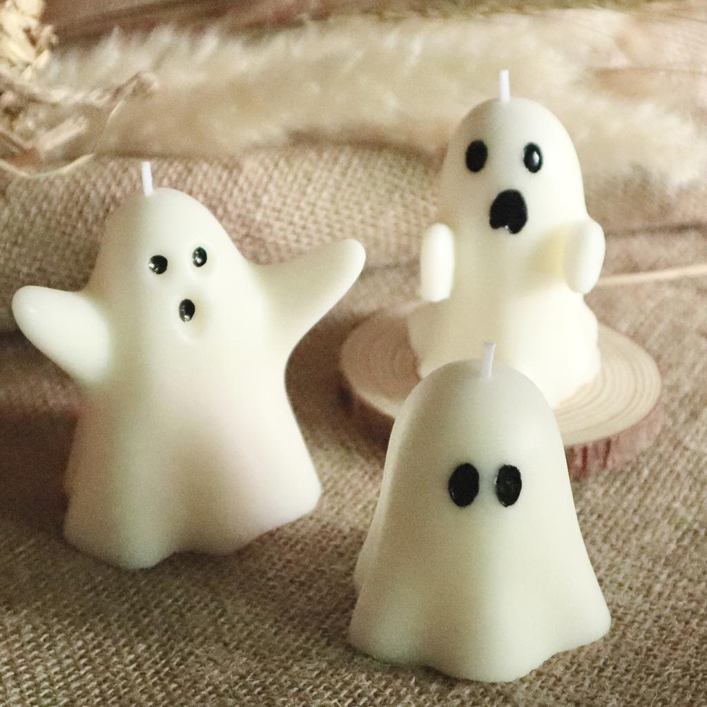 Halloween Ghost Candle Flameless Soy Wax, Pear Freesia Scented Aromatherapy Gift, Spooky Party Decorations Home Accessories