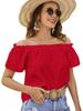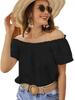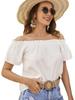 Women's Loose-fit Off-the-shoulder Boat-neck Ruffled Short-sleeved Shirt