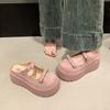 2025 spring muffin thick-bottomed bag head half slippers women wear new height-increasing versatile Velcro retro cool slippers