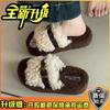 Piaohong retro style thick bottom heightening exquisite belt buckle Mao Mao slippers women's 2025 autumn and winter new one-word cotton slippers