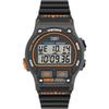 Szürke és fekete 38 mm-es gyantás tok akril lencsével; fekete digitális kijelző; Indigló világító óra számlap.