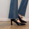 French high heels women's retro style minimalist black one-word buckle Mary Jane shoes with skirt thick heel single shoes