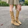 Cowhide version inner height-increasing boots retro thick heel mouth stack boots pointed western cowboy knight boots