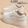 Leather platform white shoes children's spring new fashion versatile high-top shoes casual shoes women's sports shoes