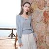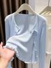 Mishow Cardigan da Donna 2024 Nuovo Elegante Pendolare Tinta Unita Ampio Design a Volant+ Gilet Blu Halterneck MXD13Z0407
