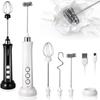 Milk Frother, USB Rechargeable LCD Hand Mixer with 3 Stainless Steel Whisk, 3 Speeds Handheld Frother Whisk, Electric