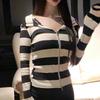 Maglieria da donna autunnale e invernale nuova a righe con scollo a V a maniche lunghe sexy slim