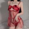 Sex pajamas women's sexy suspender lace seduction nightdress ice silk chest bow loungewear
