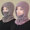 Rabbit wool blended warm hat lady mother winter scarf mask one-piece hat middle grandmother one-piece hat