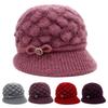 Hats Women's Autumn and Winter Fashion Wool Hats Rabbit Fur Bow Large Women's Hats Plus Velvet Thickened Cotton Hats