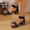 2025 foreign trade new high-heeled sandals women's thick-heeled medium-heeled women's one-word buckle sandals large-size fashion women's shoes