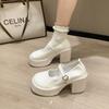 White French small thick heel high heels women's 2025 new summer round head retro Mary Jane small leather shoes