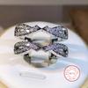 High-end Silver Zircon Wrapping Ring Super Flashing Personality Geometric Index Finger Ring Trendy Heavy Industry Ring
