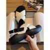 Sheepskin version~ Classic women's retro cross-strap leather open-toed Roman sandals women's summer platform with socks sandals