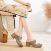Slippers summer outer wear women's shoes thick heel soft sole sandals women's first layer cowhide hollow non-slip mother sandals