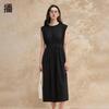 MD Women's Clothing Minimalist Fancy Waist-Tight Mid-Length Sleeveless Dress Linen Black Dress Female 06648589800