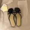 2025 new French patent leather black bow sandals women's versatile simple low-heeled casual open-toed slippers