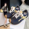 Cowhide version double shoelaces blue women's autumn new retro fashion soft-soled casual single shoes