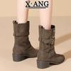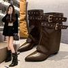 Leather But Knee Knight Boots Spice Girls Belt Buckle Pants Boots Short Boots Women's Boots Western Boots Women's Boots