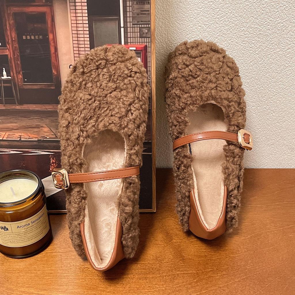 Gentle word with flat bottom velvet Mary Jane Doudou shoes fairy wind fluff shoes women wear 2025 autumn and winter new models