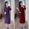 Plus Size Sweater Skirt Over The Knee Women's Autumn and Winter with Lazy Style Loose V-neck Bottoming Knitted Dress