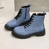 Autumn large size retro style short tube lace-up Martin boots women's foreign trade thick heel thick sole round head knight cowboy boots