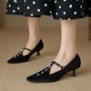 3-Satin high heels for women, not tired feet, shallow mouth square head, one-word single shoes, professional commuter work shoes with skirts