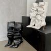 lenkisen PU Autumn Winter Shoes Pointed Toe Stiletto Thin High Heels Metal Rivets Keep Warm Fashion Knee Boots