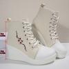 Fashion Floral Embroidered Wedge Ankle Boots for Women Autumn Lace Up High Top Casual Shoes Woman Plus Size Fashion Platform Short Boots