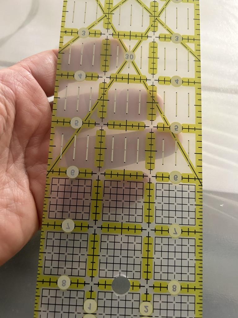 Denne linjalen er en game changer for meg. Ny med å quilte denne linjalen hjalp meg med vinkler og firkanter. Solid plast slik at den ikke bøyer seg. Se gjennom så du kan følge dine egne linjer. Anbefaler dette 100%.