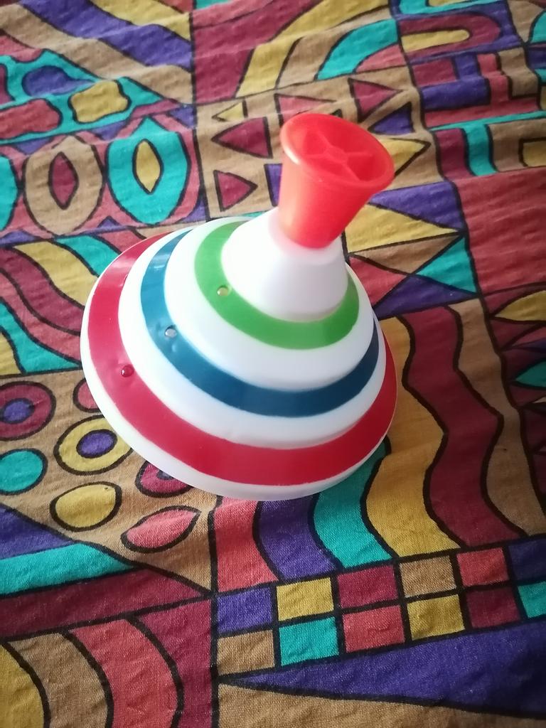Storslått snurretopp, verken for stor eller for liten, perfekt i barnehendene 👍